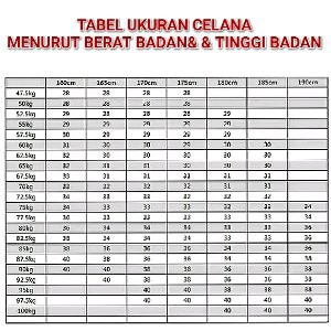 Ukuran Celana Berdasarkan Tinggi Dan Berat Badan Berbagai Ukuran